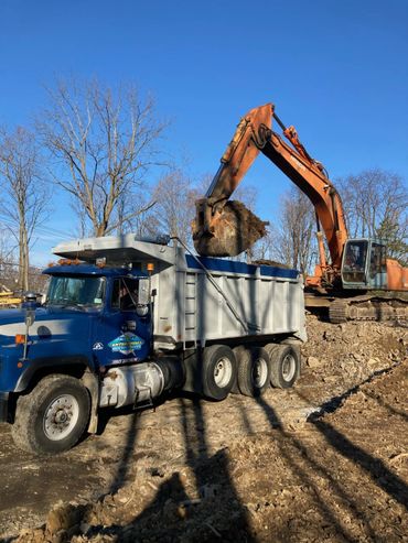 KT Enterprises can fulfill all of your trucking needs - start to finish - from working under the excavator, at the project's start, to hauling in all aggregates needed, to debris removal. We have convenient access to a DEC approved dump site to support concrete, asphalt, and dirt.